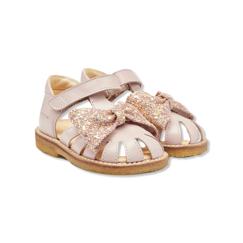 Smukke begynder skindsandaler med en funklende Glimmer sløjfe.