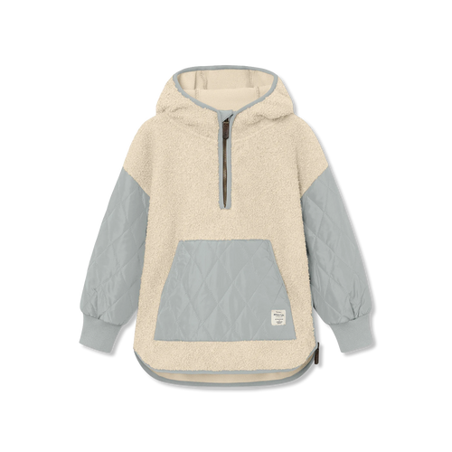 - Hætte med høj hals og en kort lynlås